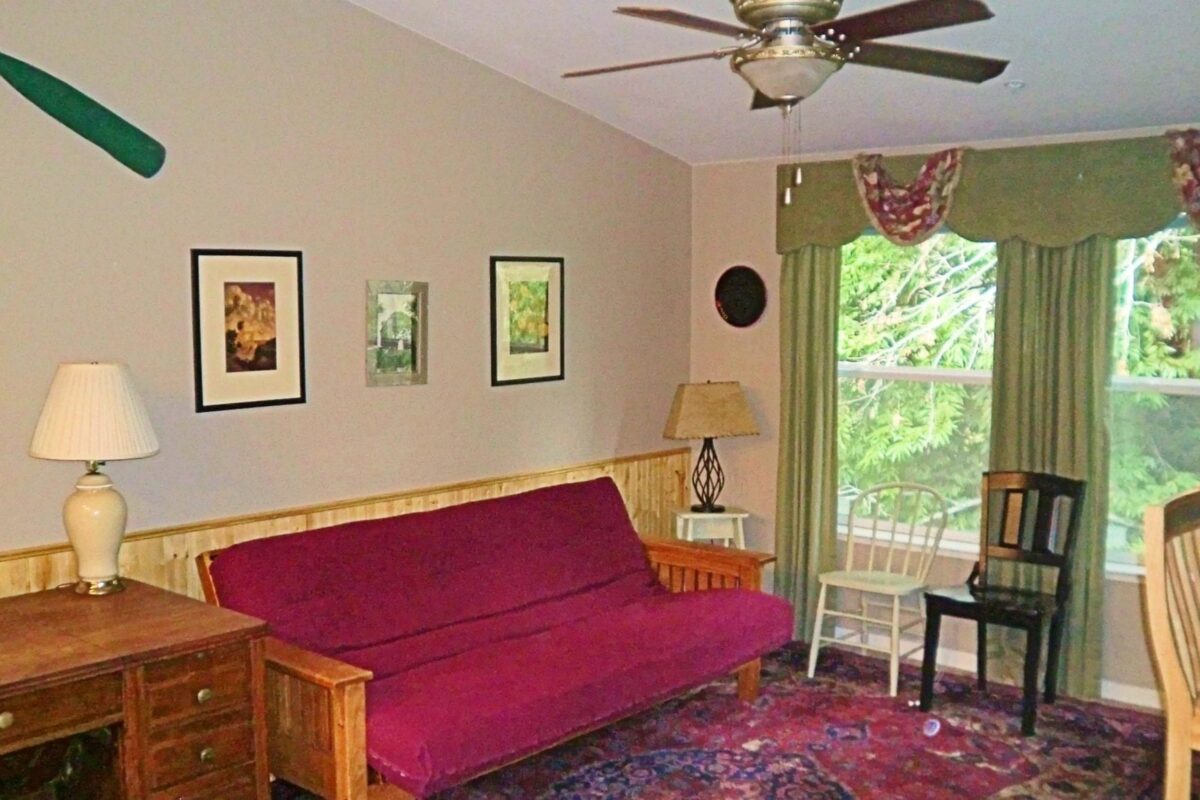 The beauty of the area and the importance of sustaining it for future generations were the inspiration for our Nature’s Suites. Each suite was constructed and is operated using the highest standards of ecologically sustainable green practices. They have double panel, low e windows and solar energy. The Dove Suite has a queen bed in the bedroom and the living room has a double futon. It will sleep a maximum of 4 regardless of age. It has a full kitchen with dishwasher, gas fireplace tv, dvd/vcr player, phone, and air conditioning. It has a private deck overlooking Pocket Canyon Creek.