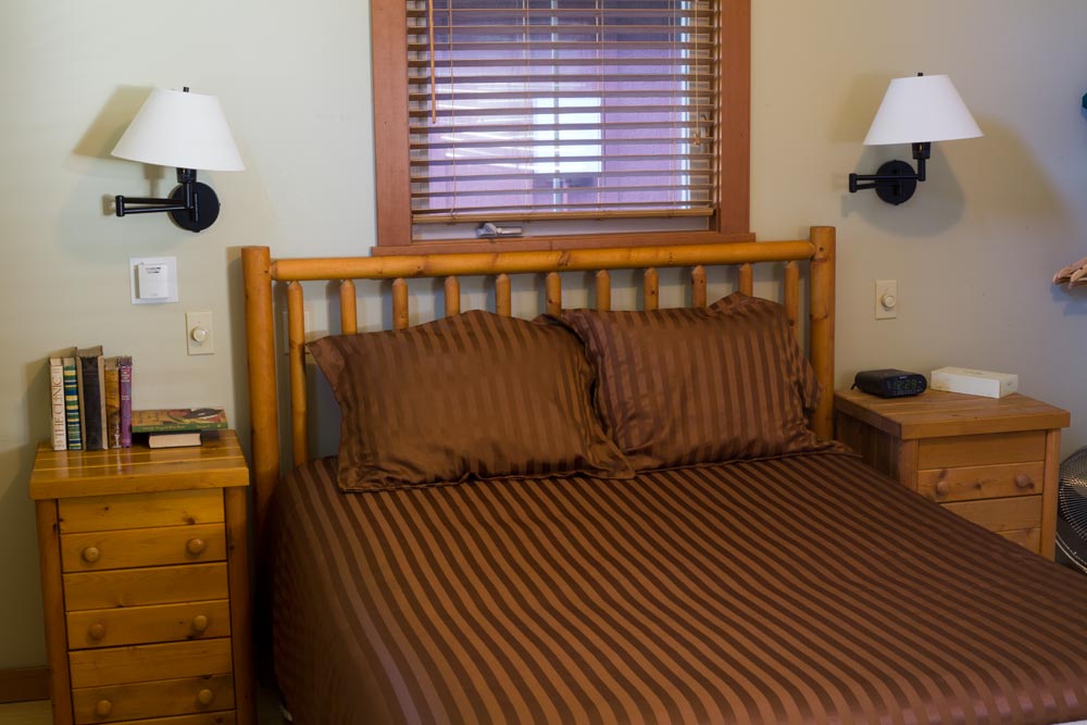 Lark is an accessible studio. The Lark is a charming, bright two person studio with full wheelchair-friendly design including a bathroom with a roll in shower, full kitchen, gas fireplace, and a queen bed. Wifi and wired internet, TV-with HBO, VCR, telephone, clock radio, iron and ironing board. The Lark has the following accessibility features: visual fire and smoke alarms, grab bars in the bathroom, roll up sinks, roll in shower, 36″ clearance on the side of the bed, lowered hooks and rod for hanging clothes, hearing impaired kit with tty phone and door knocking alert, reserved parking with a disabled placard, elevator with braille signage, accessible path of travel from the reserved parking to the elevator and from the elevator to the accommodations.